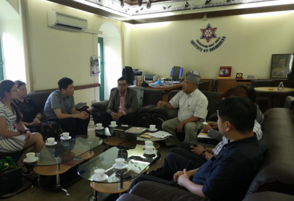 代表团前往特里布万大学,与工程学院院长Ramchandra Sapkota教授、Sushil Bahadur Bajracharya教授、Tri Ratna Bajracharya教授等人交流大学间合作办学的相关事宜。